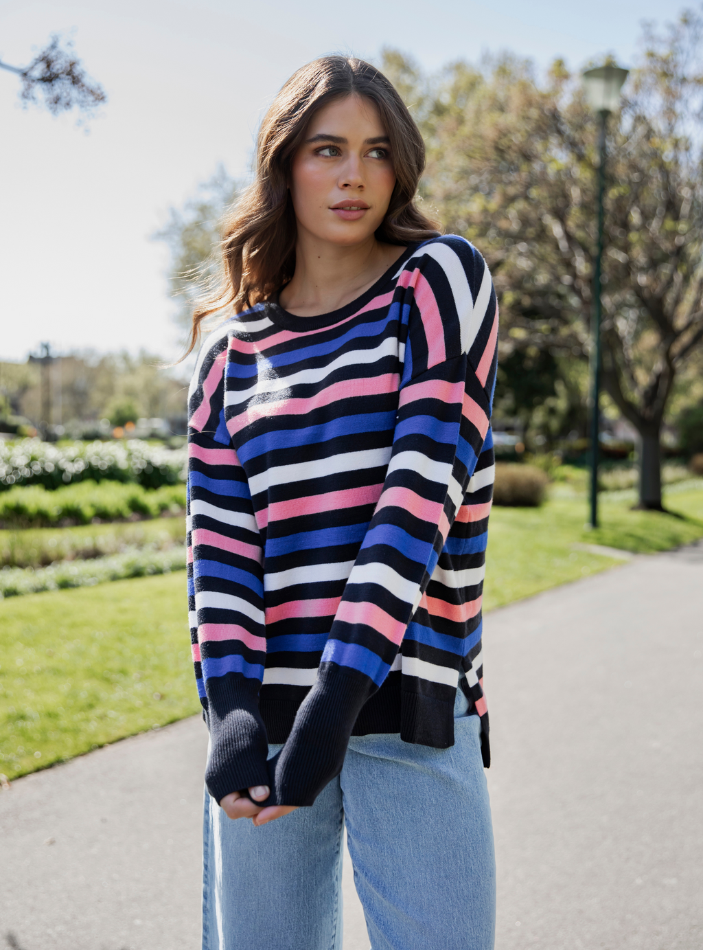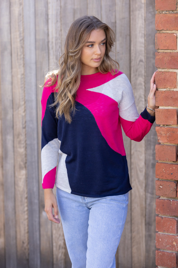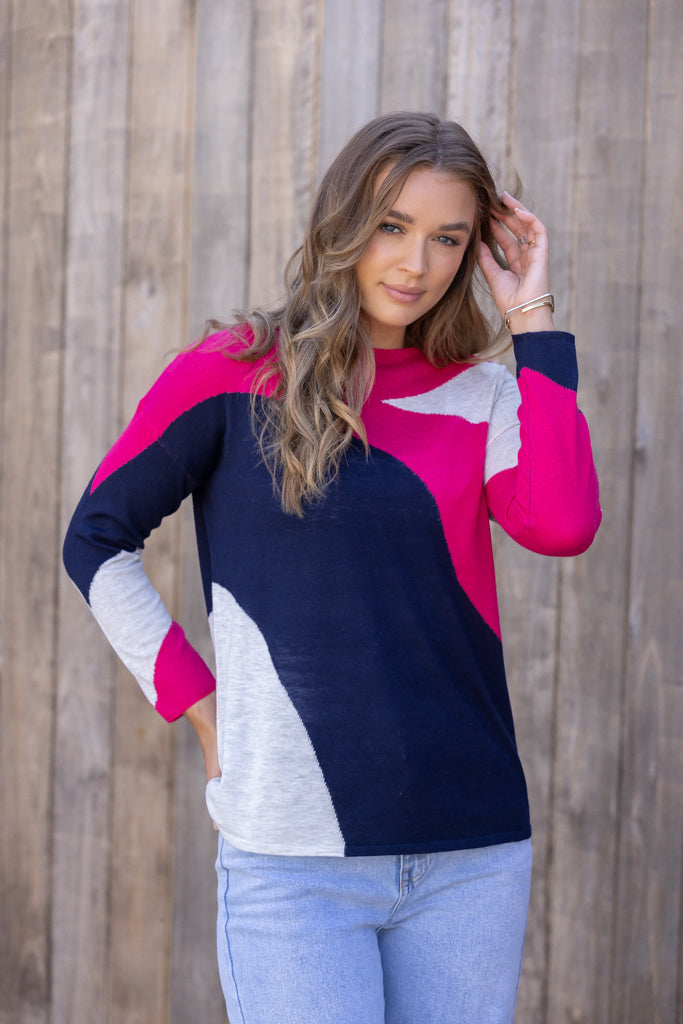 CHARLOTTE KNIT TOP - Navy/Magenta