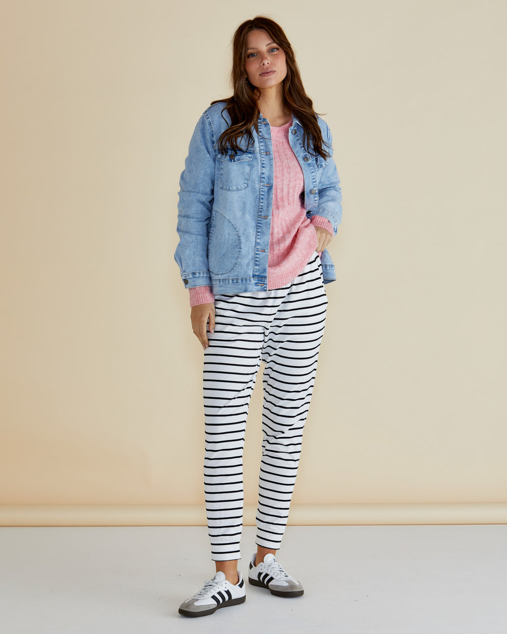 LOUNGER SCOOP HOODIE - Clover/White Stripe