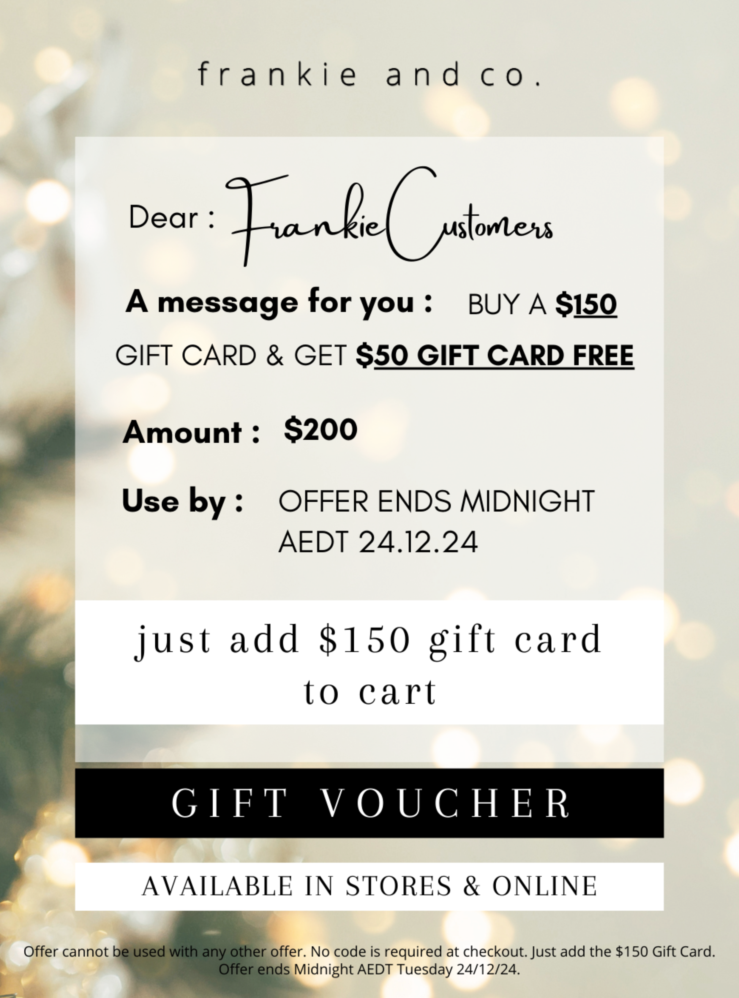 Shopping for someone else but not sure what to give them? Give them the gift of choice with a Frankie & Co Clothing Gift Card.
