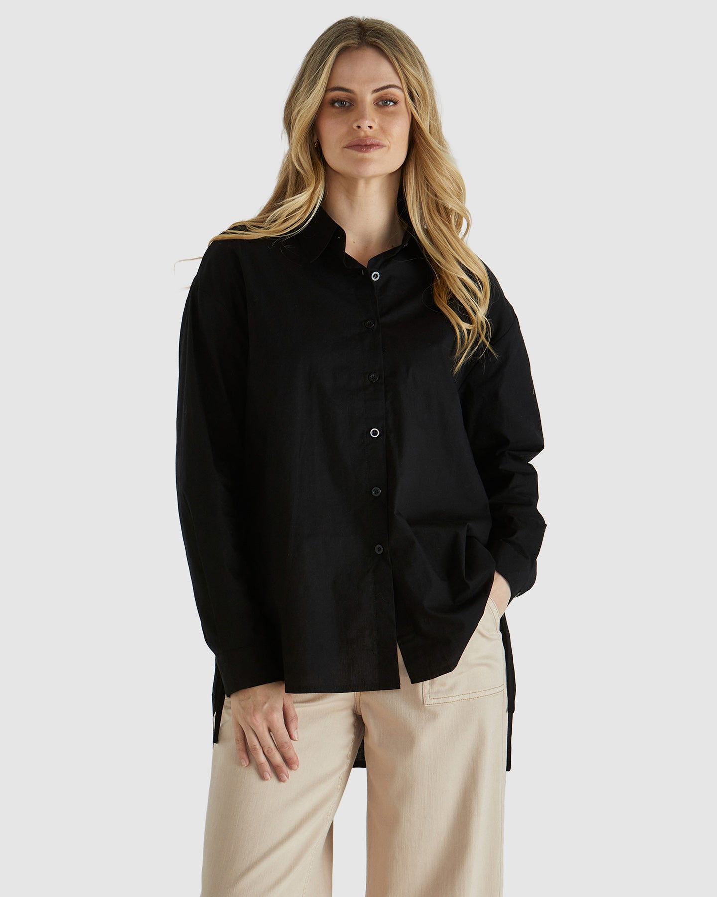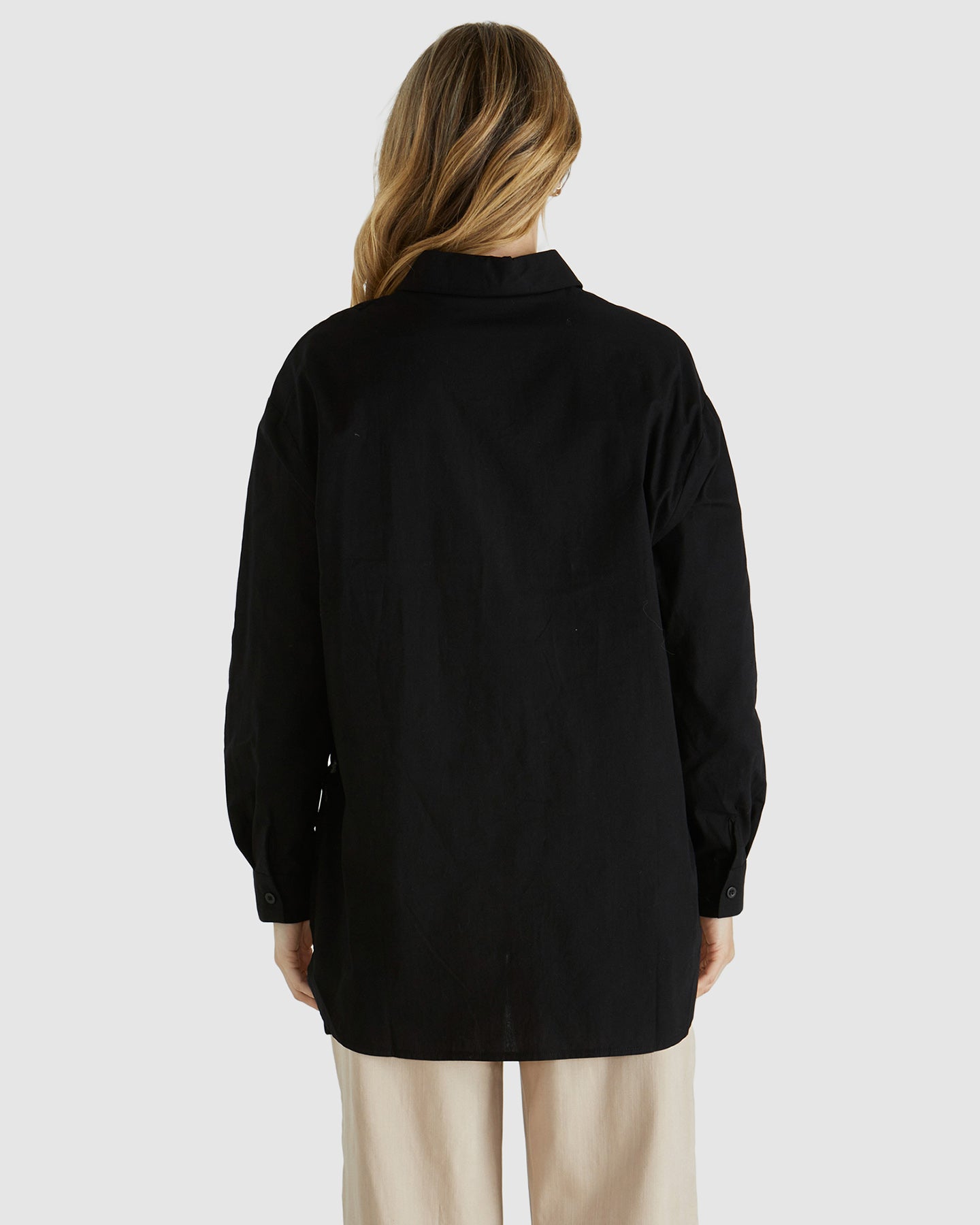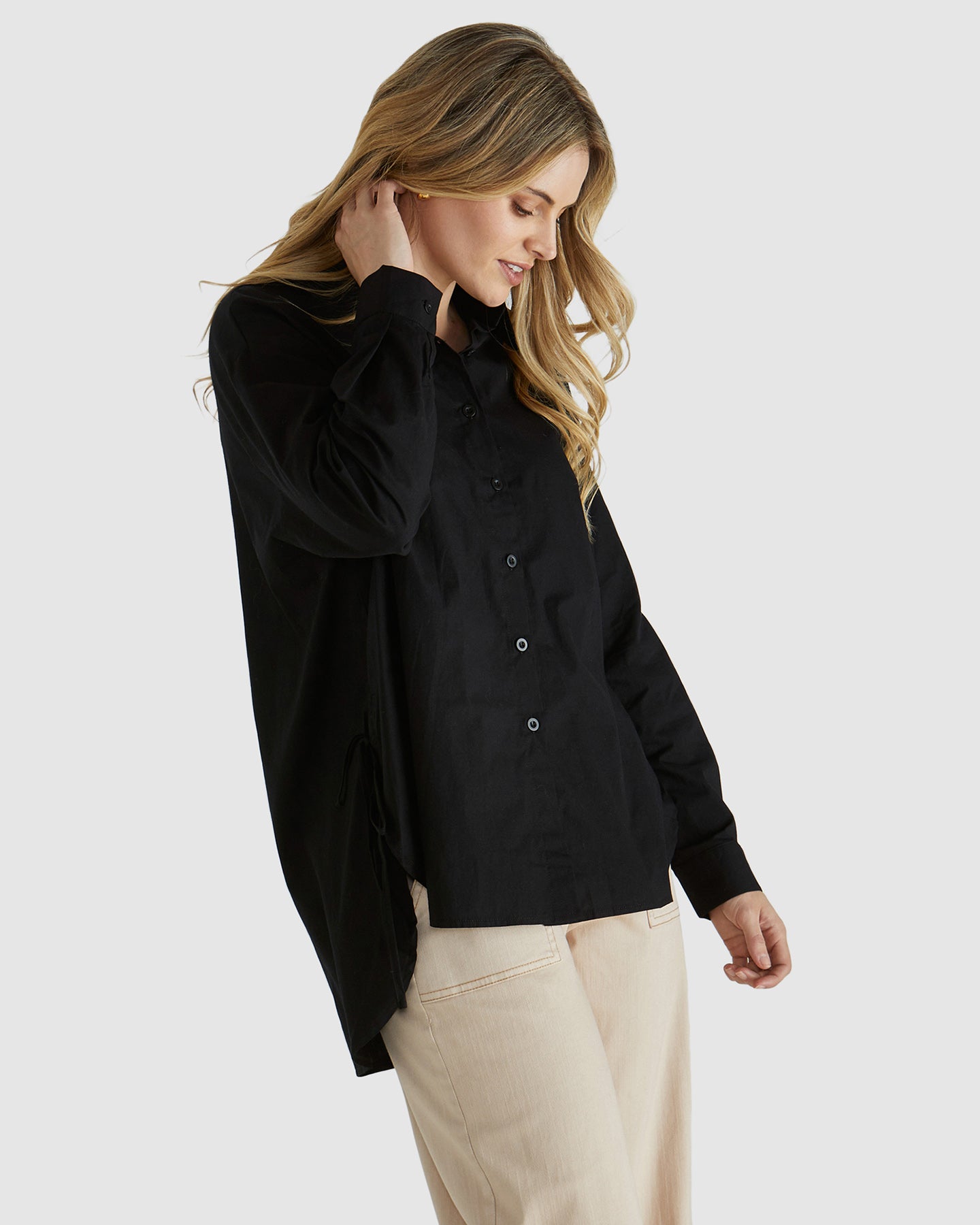 A fresh take on a classic, this 100% cotton shirt is the perfect mix of polished and relaxed. Featuring tie details at the side seams and a button-front opening, it’s got that cool, effortless vibe. The cuff button detail adds a refined touch, making it easy to dress up or down. Whether paired with denim or layered over a dress, this on-trend piece will keep you looking chic.