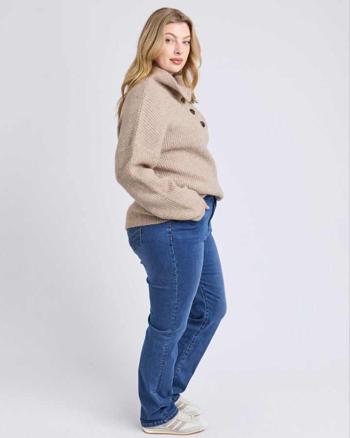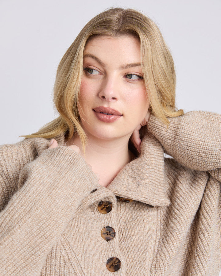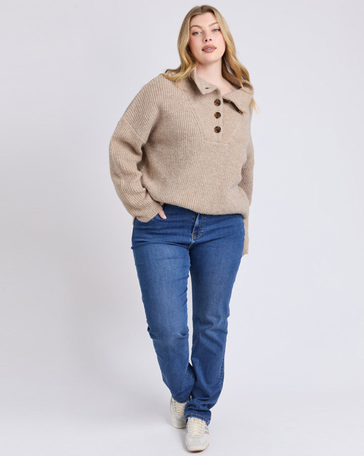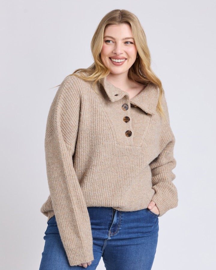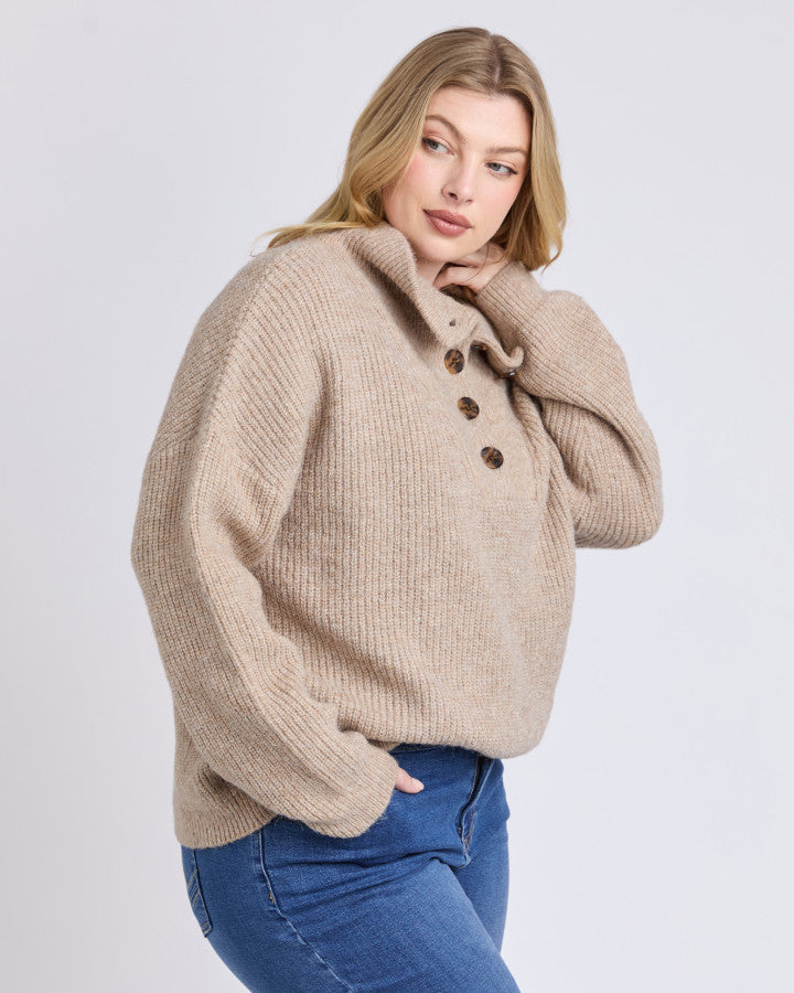 Cosy comfort and style! The Bron Button Knit features a relaxed collar with chunky tortoiseshell buttons and is the ideal knit to complement your wardrobe through the cooler months.