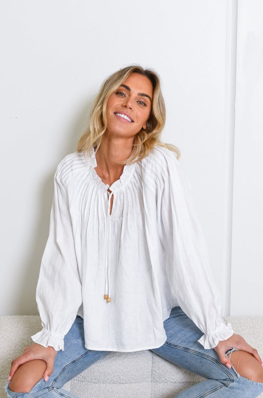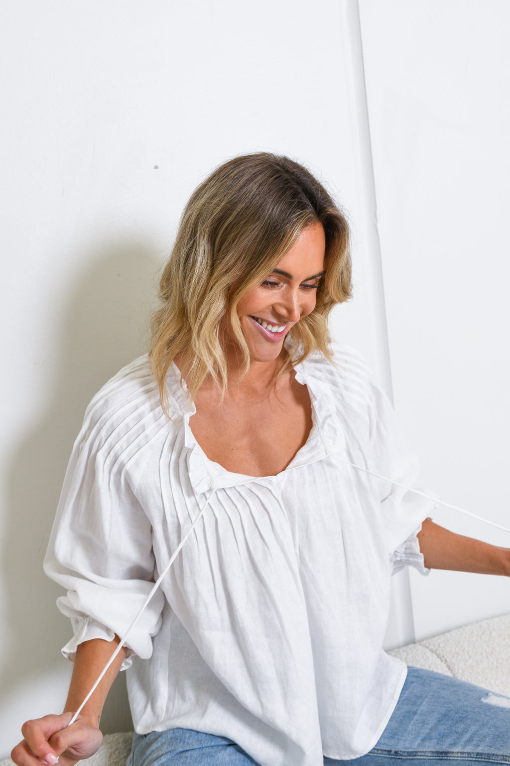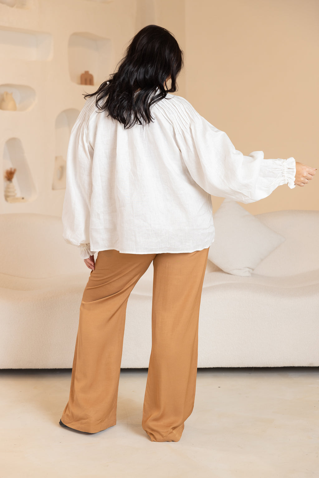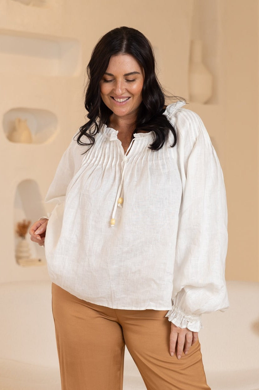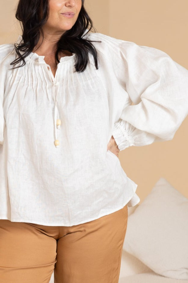The Charlotte Linen blouse is a beautiful piece that will not date and is suitable for any occasion. The feature pin-tucking is very stylish and the top just sits beautifully. Definitely a winner in my books.