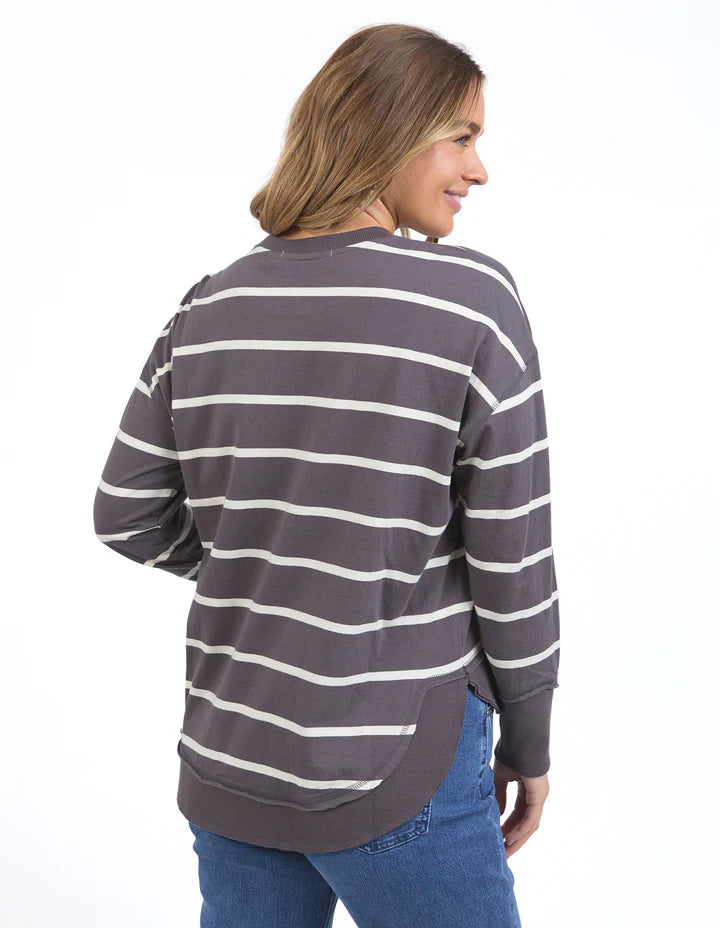 FARRAH STRIPE LONG SLEEVE - Dark Grey/ Vintage White Stripe
