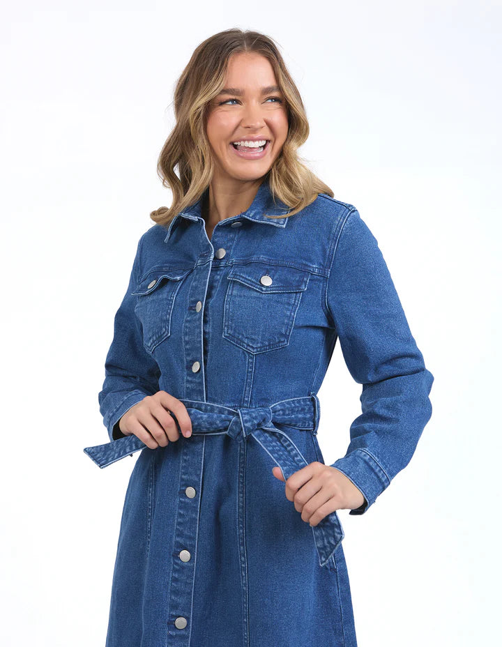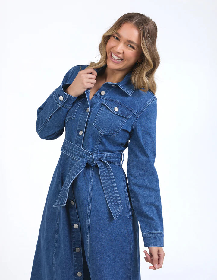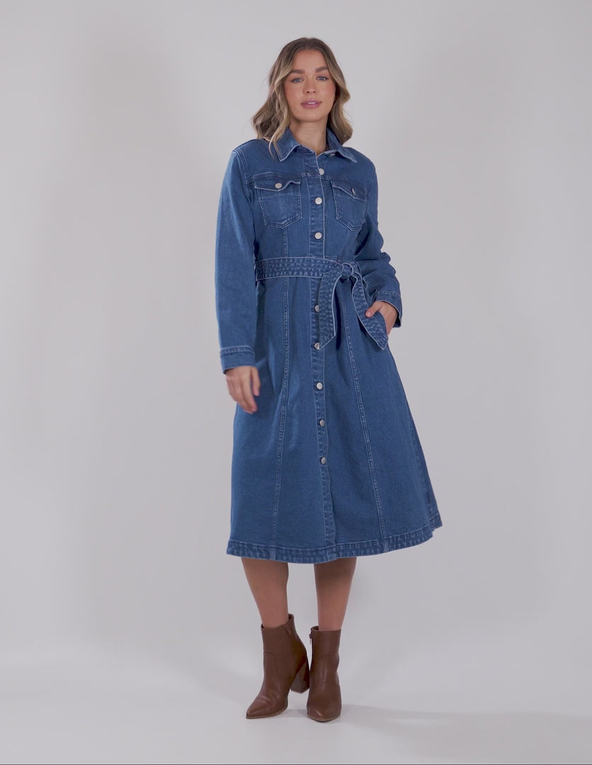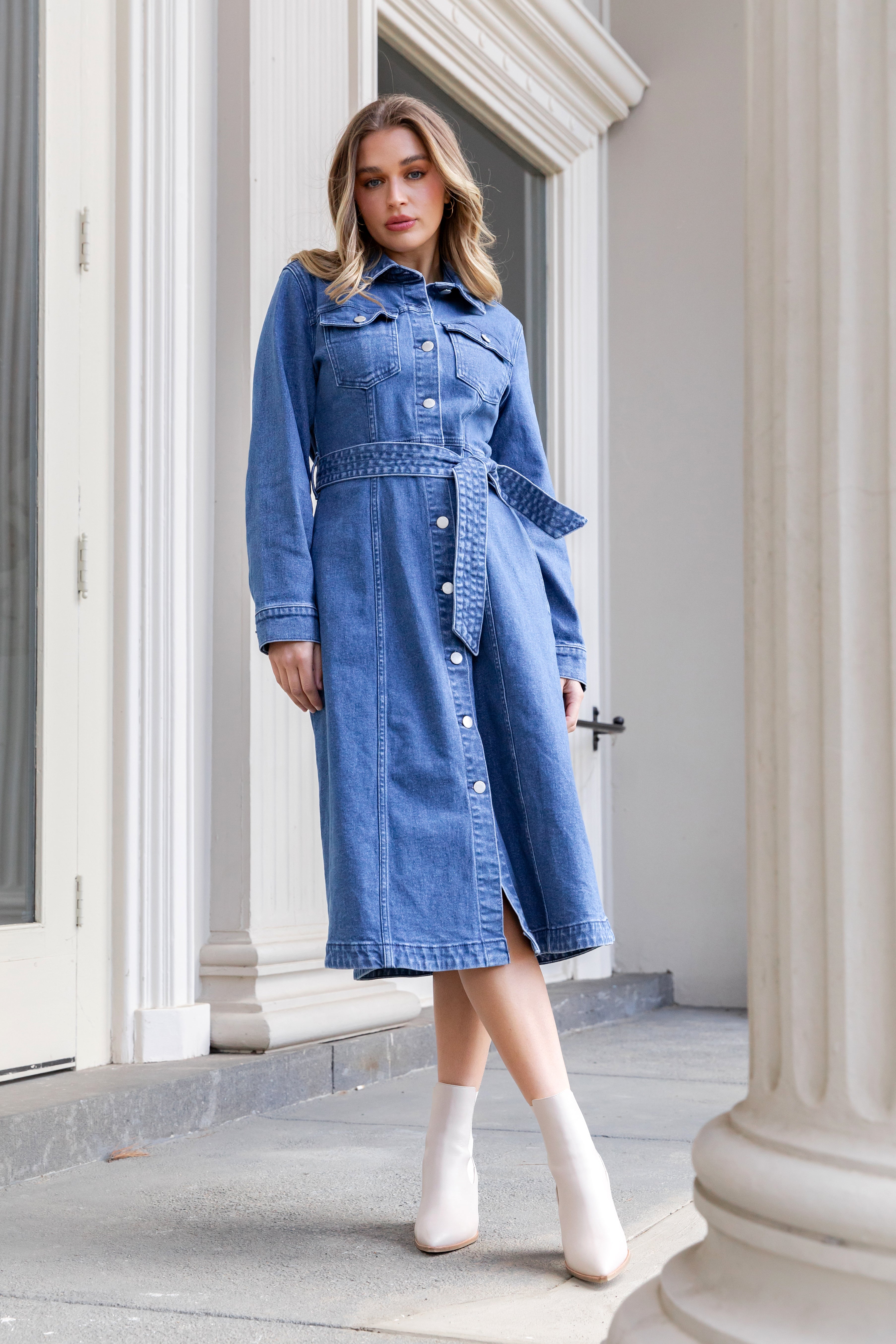 Say hello to your new wardrobe crush! The Genevieve Denim Dress is here to steal the show with its midi length, waist tie to flatter your figure, and side pockets for all the essentials. With long sleeves for those cooler days, this dress is perfect for dressing up, down, or anywhere in between. Ready to become your new best-seller!