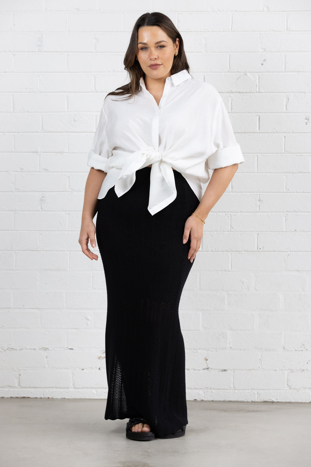 Take your wardrobe to the next level with the Grace knit maxi skirt. The figure-flattering design hugs your curves and the timeless black color makes it a versatile addition to your collection. Elevate any occasion with this must-have skirt.