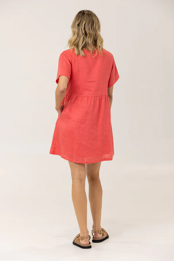 HARLEY LINEN TEE DRESS - Watermelon