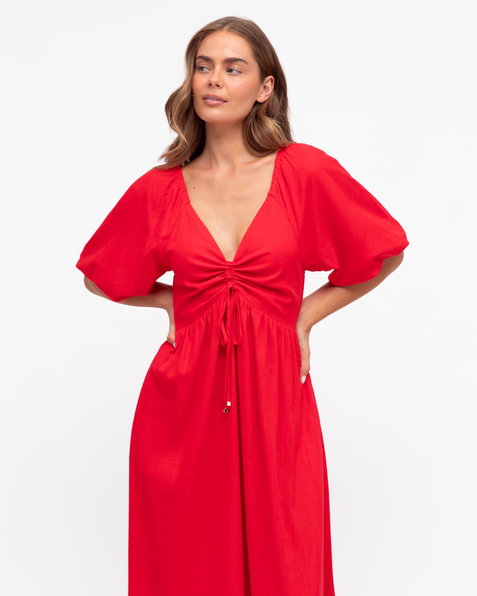 ILLARIA PUFF SLEEVE MAXI DRESS - Red
