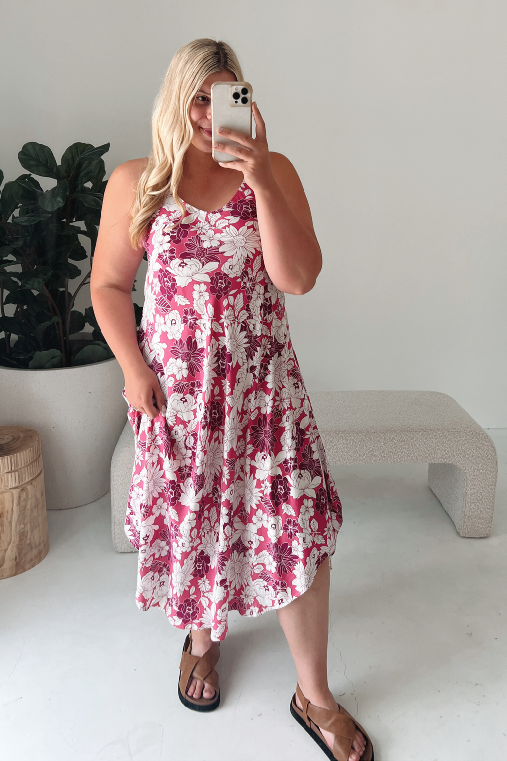 This feminine dress is a great warm-weather piece. The fabric is lightweight and breathable, and the flared shape is breezy and oh-so comfortable. Throw on this easy style with your favorite sandals and you’re ready to go.