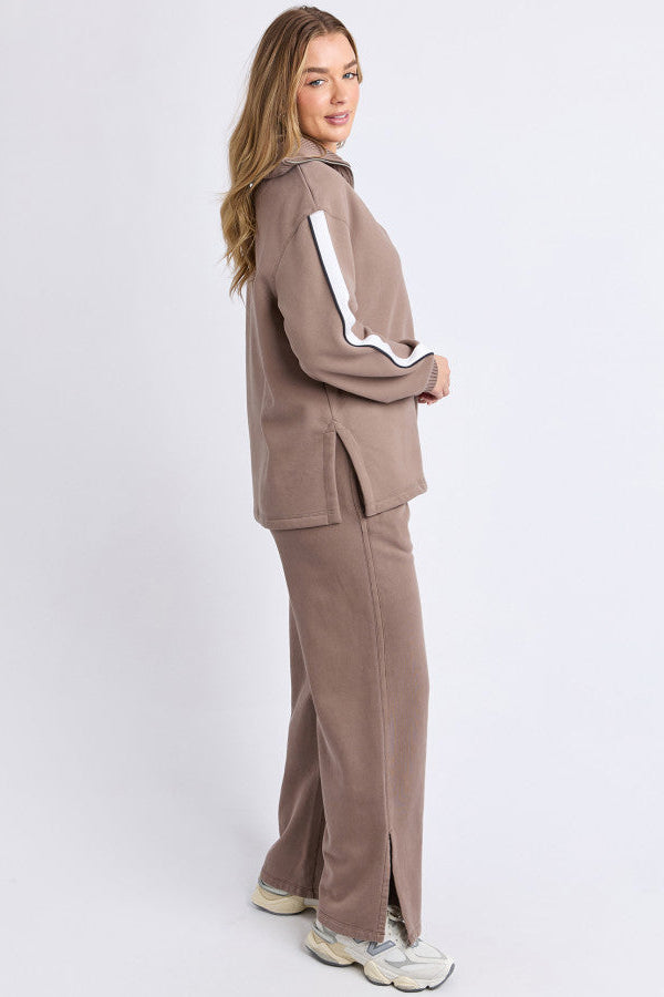The Knit Collar Crew is your new fave for comfy, elevated style. With a front zip neck opening that turns into a chic collar, plus sleeve panel detailing, this relaxed-fit crew takes casual wear up a notch. The knit collar and cuff details add a refined finish, making it perfect for layering or wearing solo. Get ready for effortless style with ultimate comfort!
