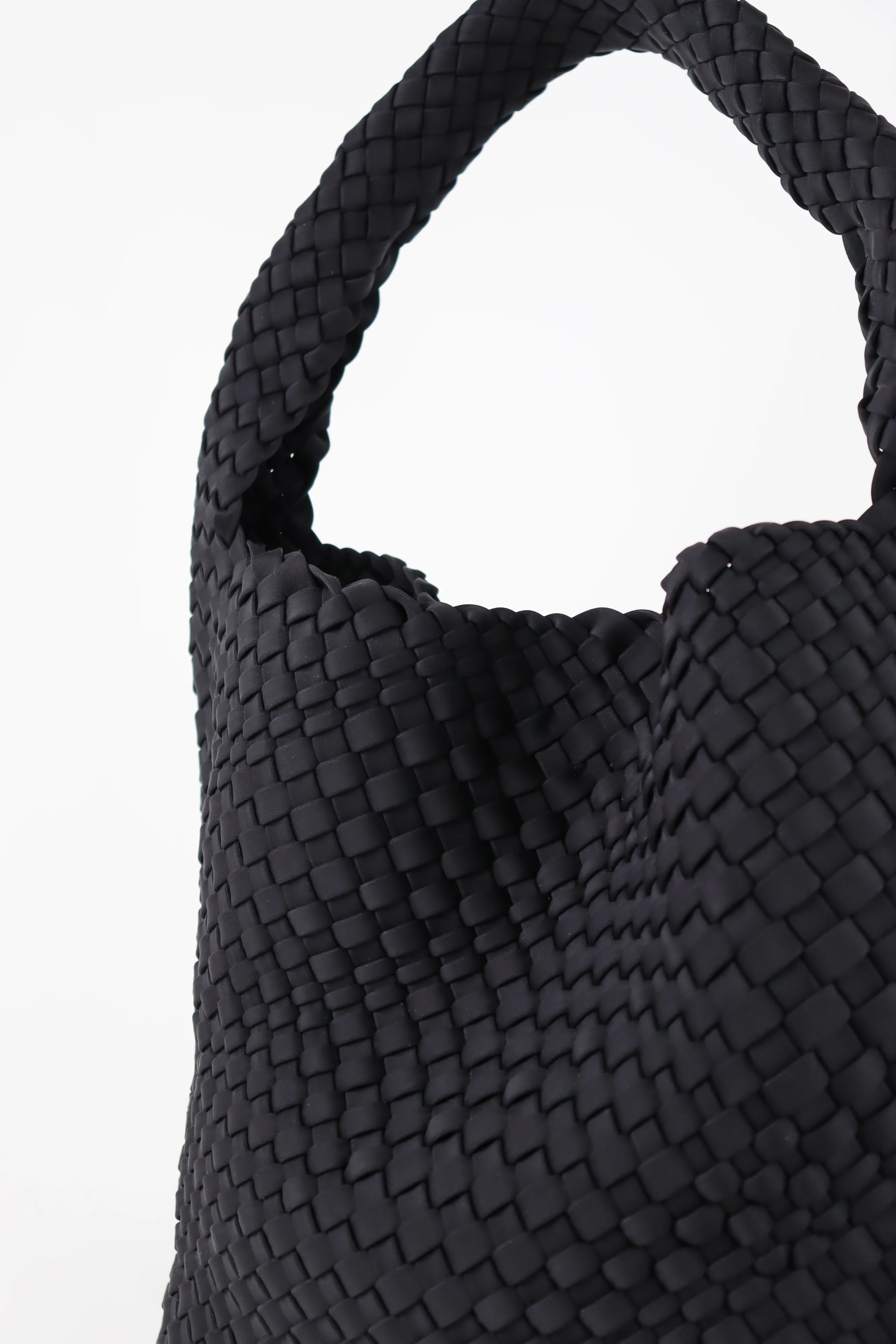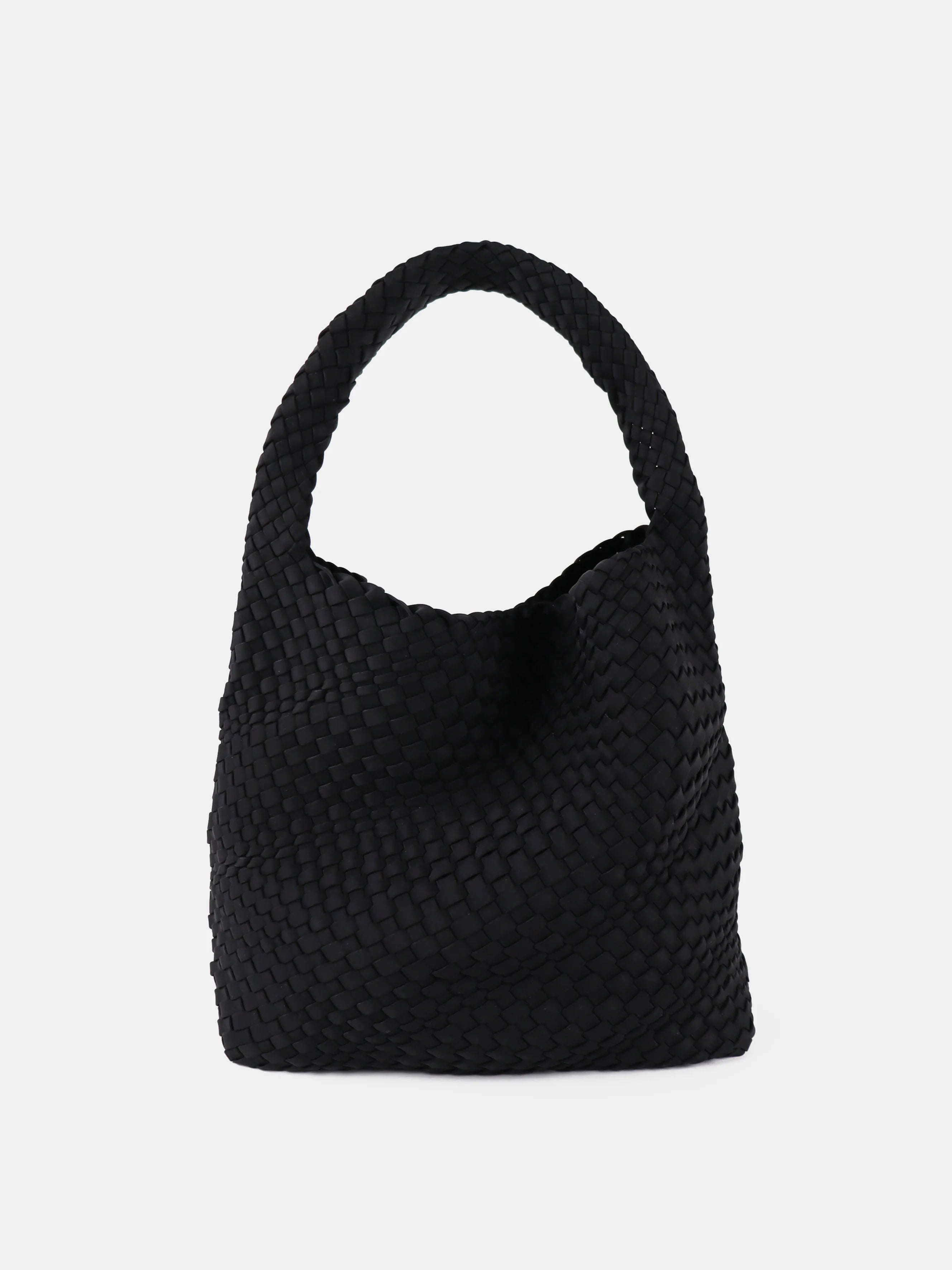 Elevate your everyday style with the Layla Woven Shoulder Bag in Black. Crafted from durable poly thread, its spacious design effortlessly carries your essentials, while the timeless woven finish adds a chic, versatile touch—perfect for workdays, weekends, and everything in between.