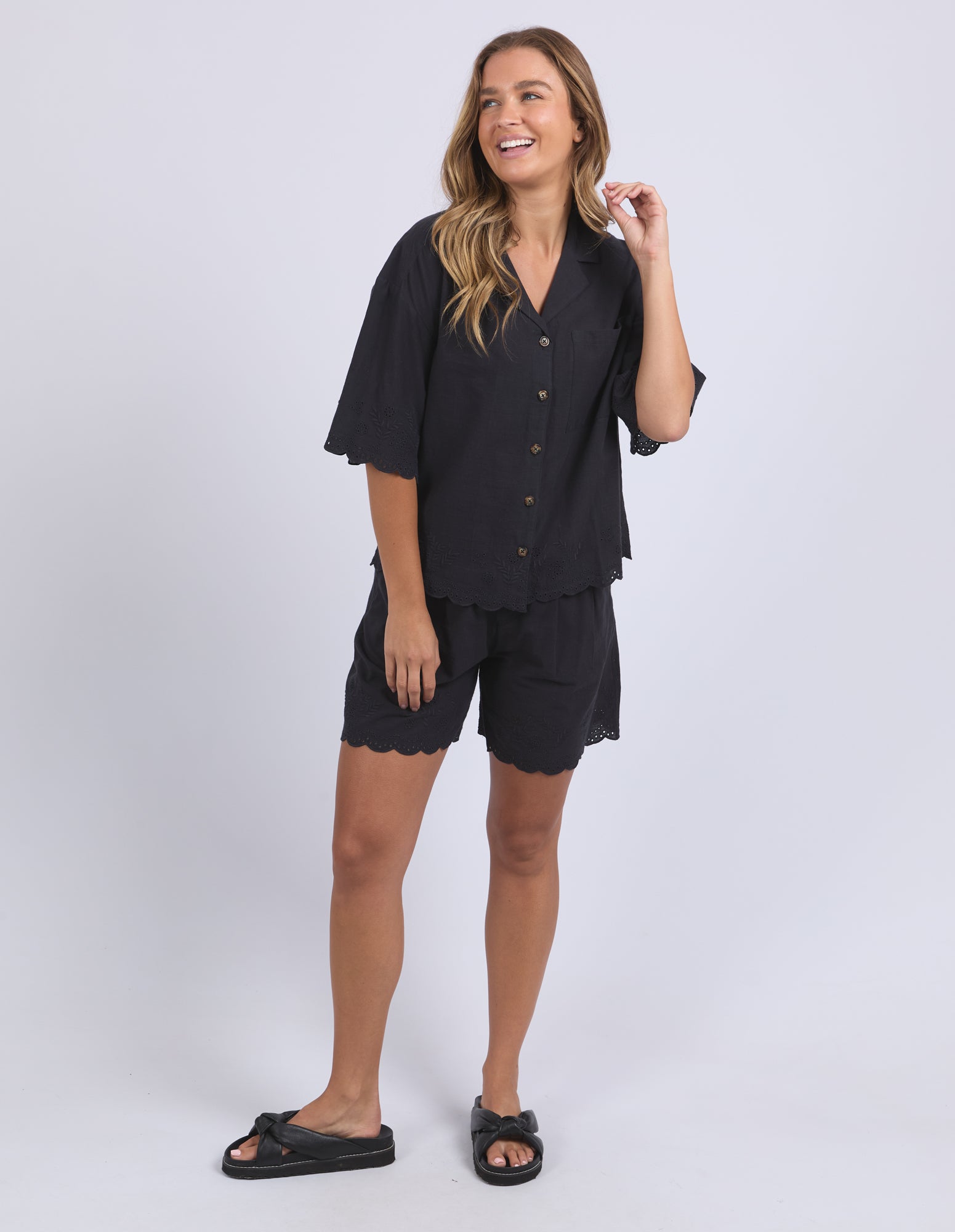 Step up your shirt game with the Madeleine Shirt featuring a classic front placket and embroidered details around the hem and sleeves. Made from 100% cotton, it offers a relaxed fit that’s perfect for easy, stylish days. A subtle statement piece you’ll want to wear on repeat.
