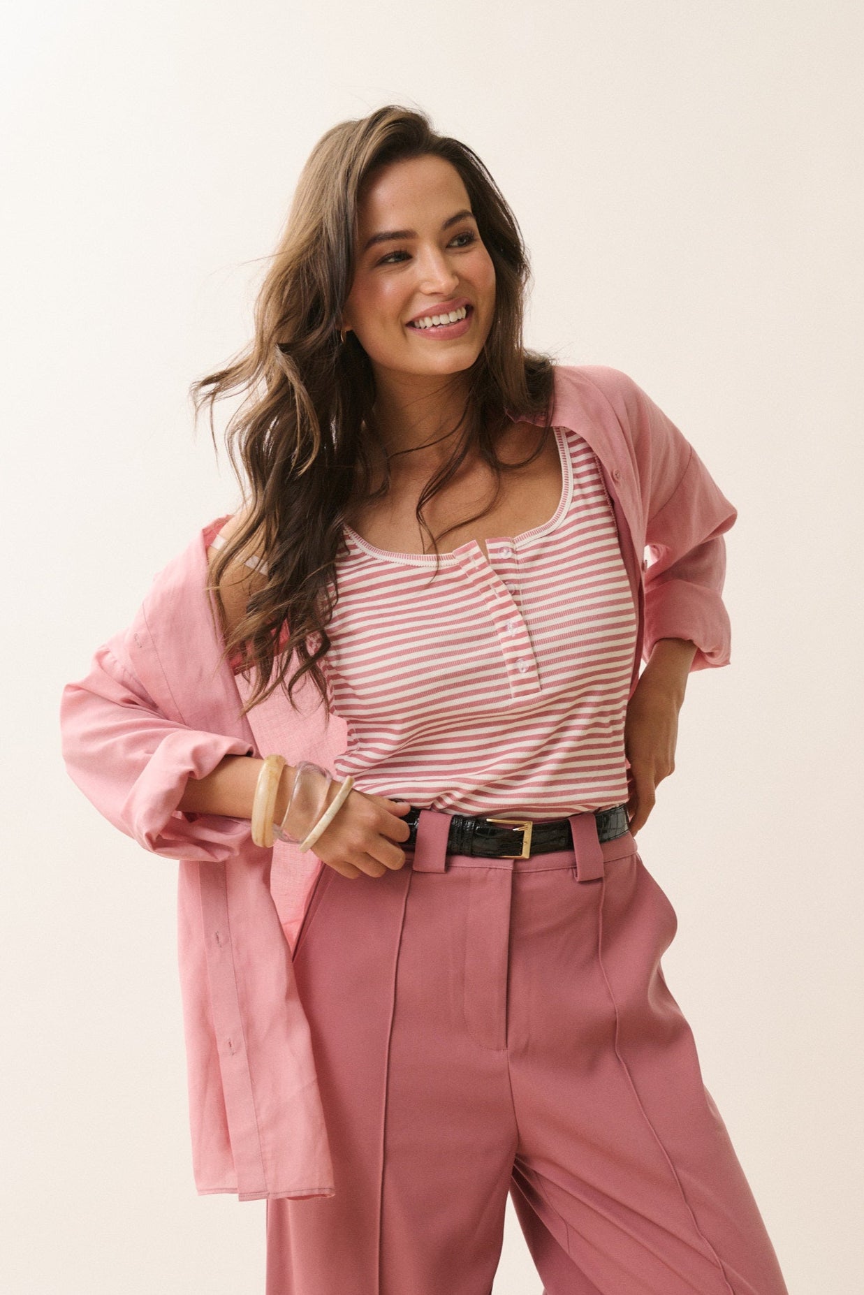 - Oversized fit, button front shirt