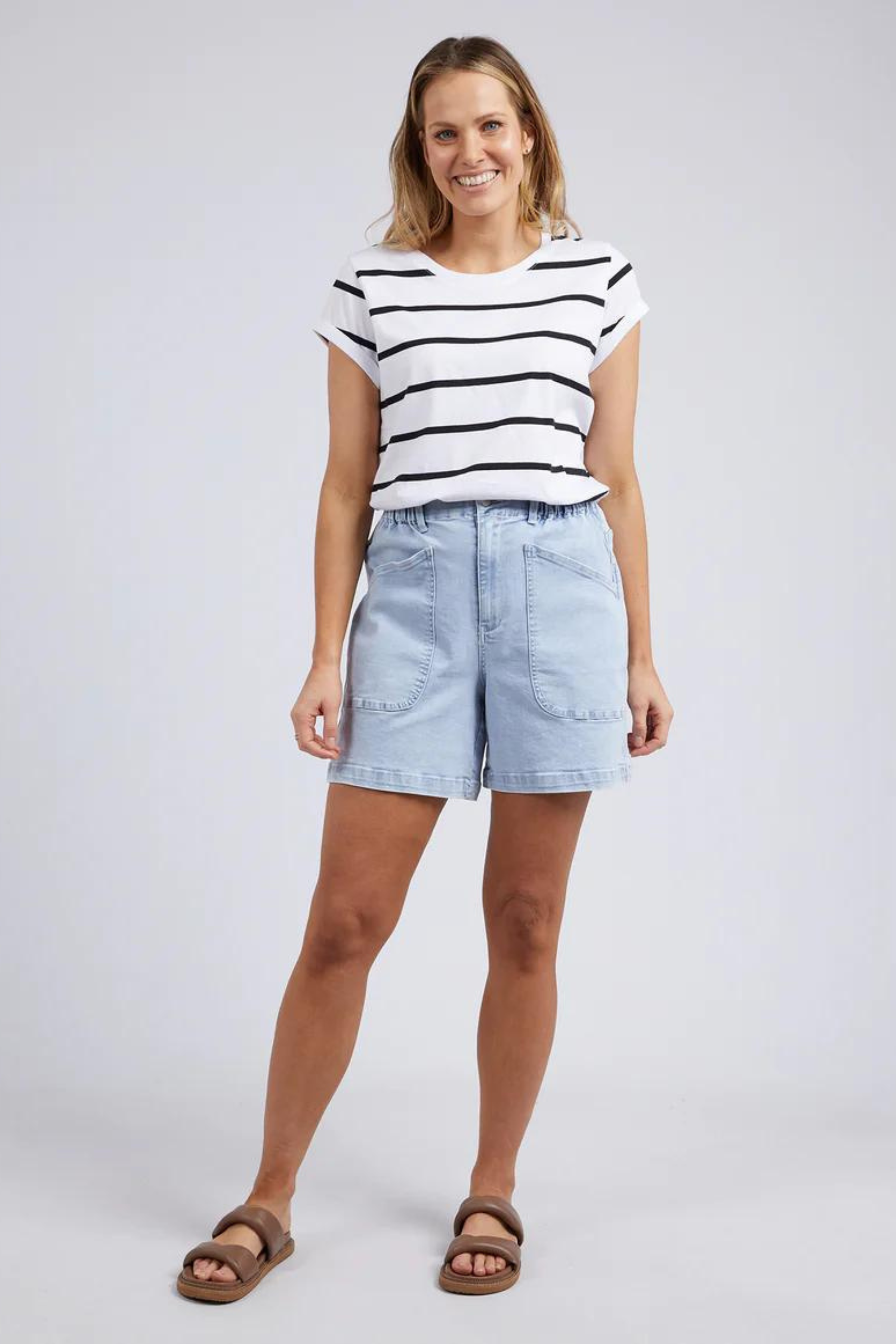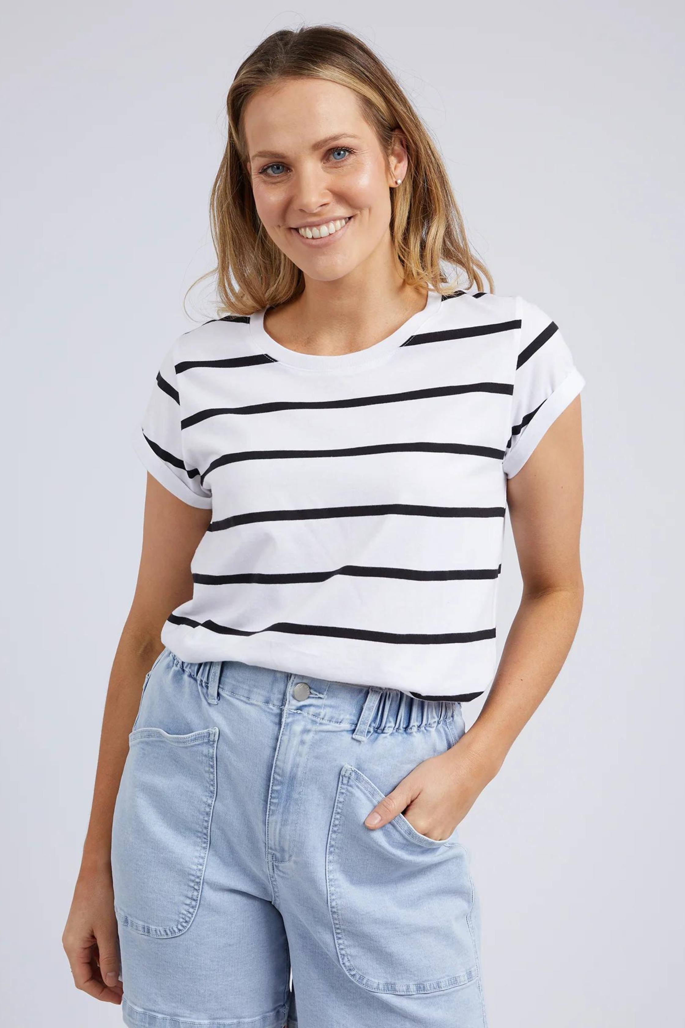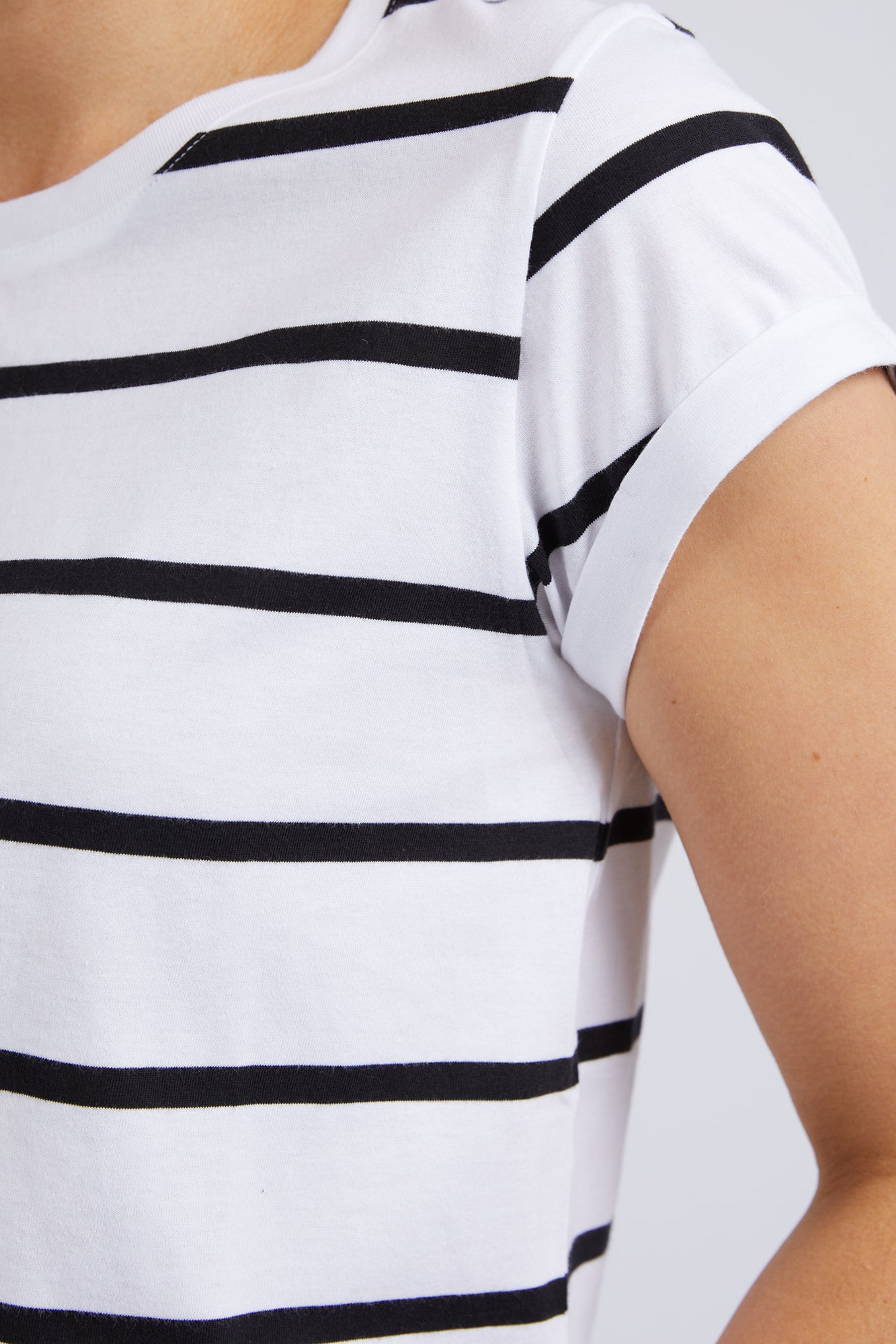 The Manly Stripe Tee will be your favourite in no time! Super soft and cool in 100% Pima cotton with rolled cuff sleeves and a curved hem. Get one in every colour!