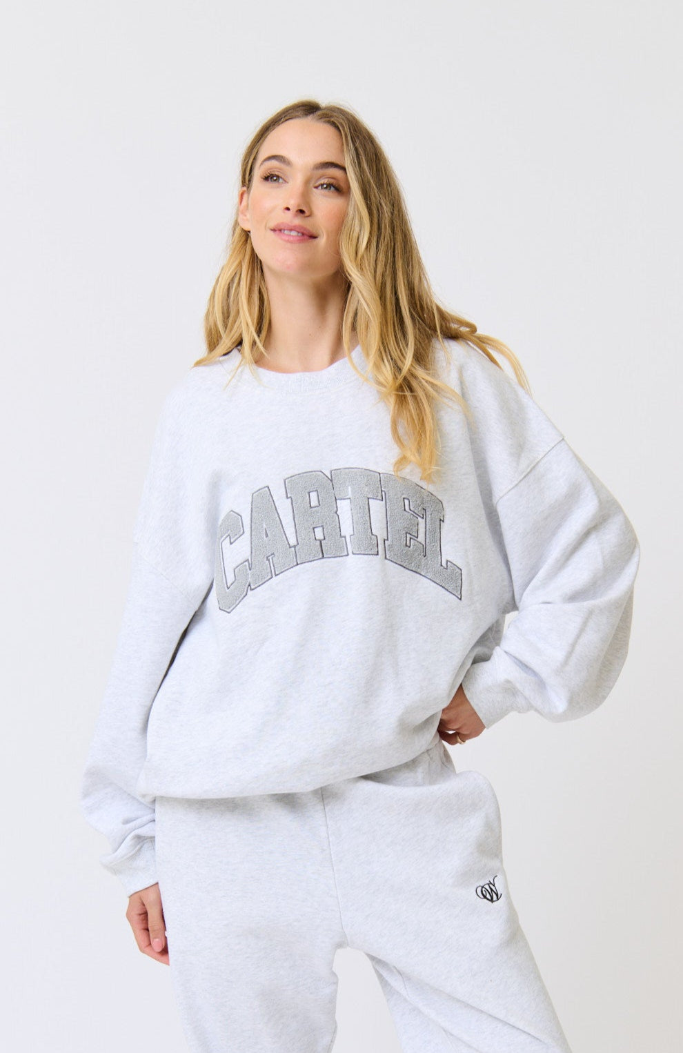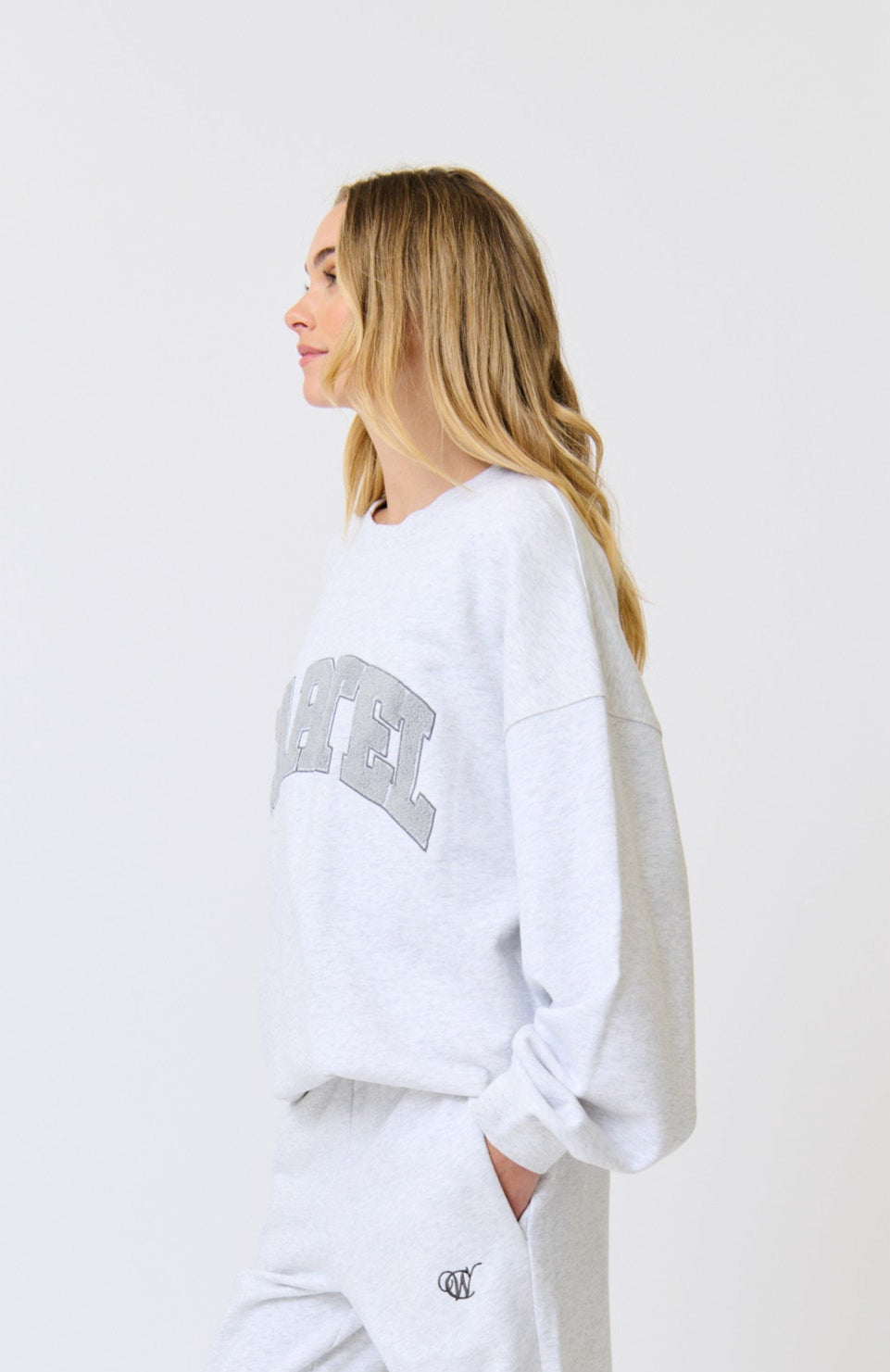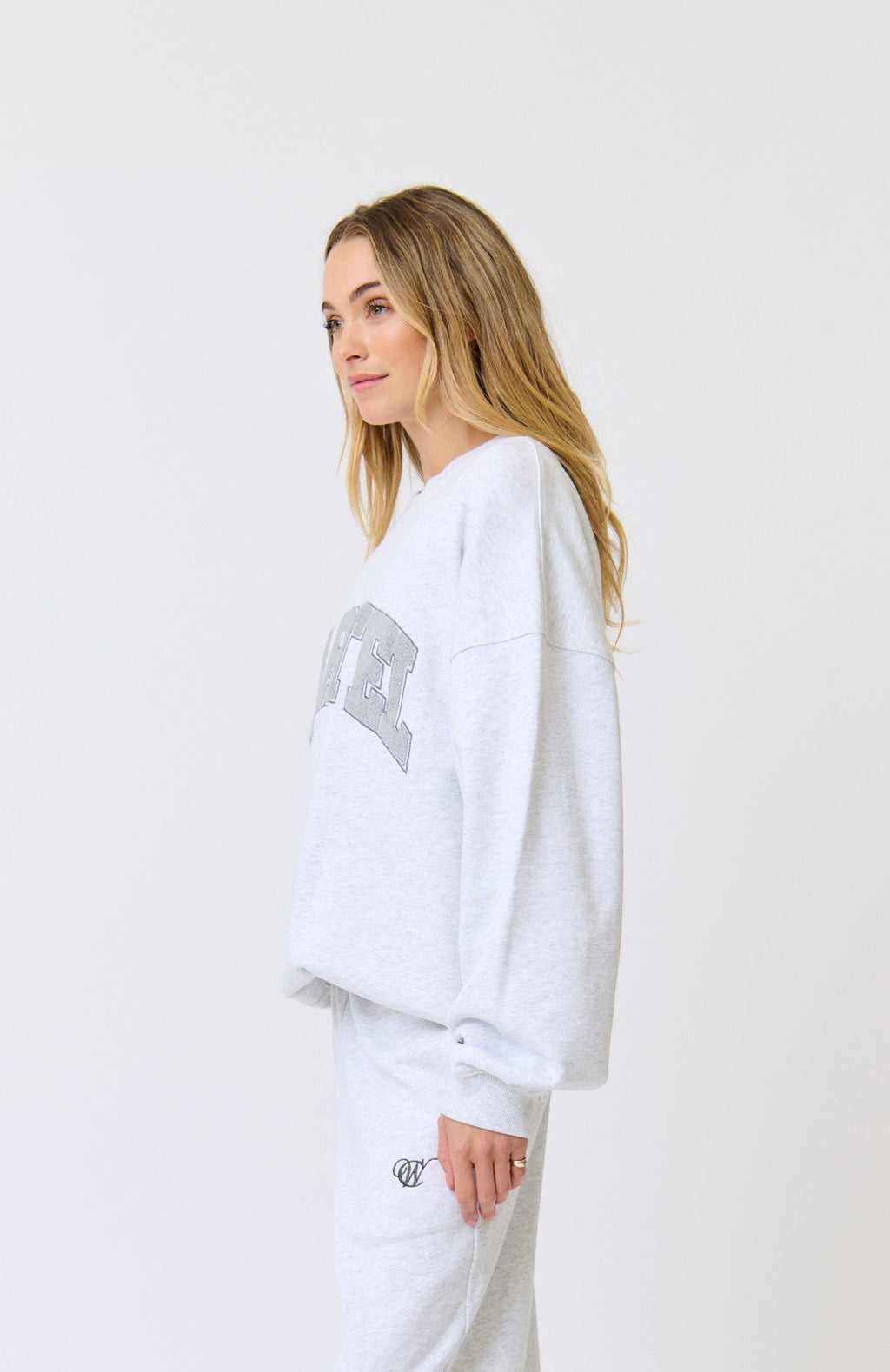 • Large collegiate applique logo in charcoal toweling