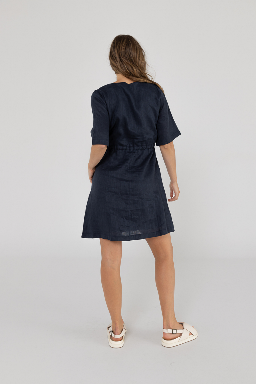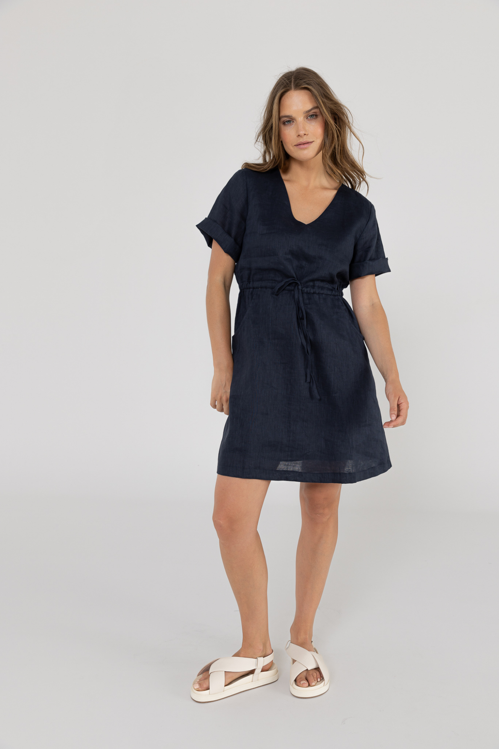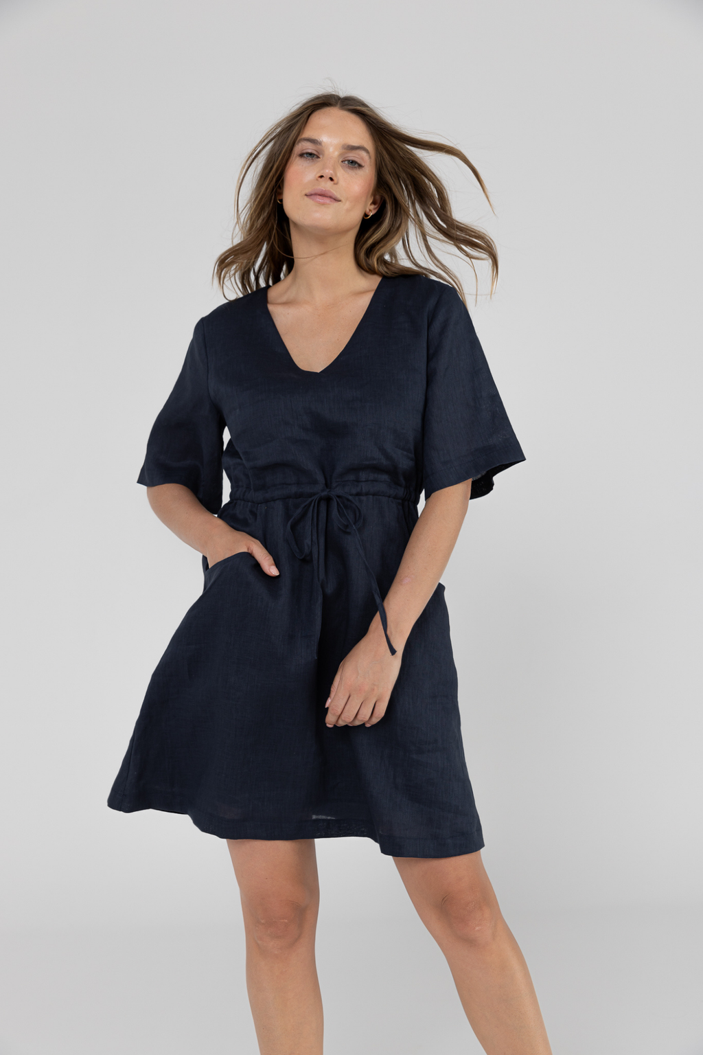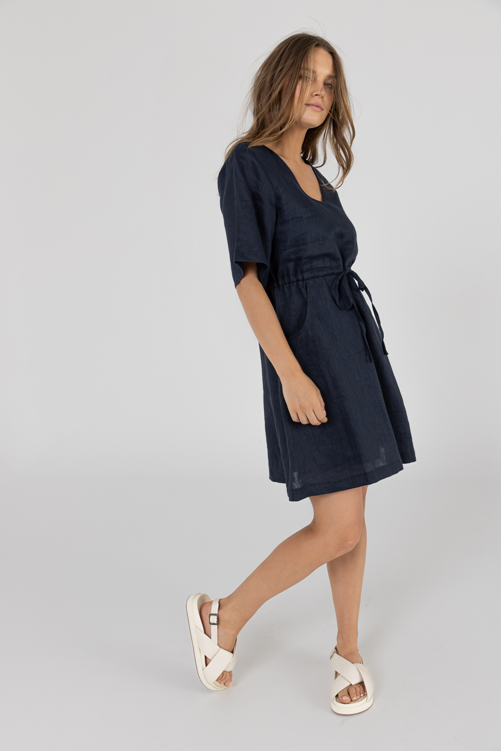 The Riley Linen Dress is perfect for any occasion. Made with high-quality linen, it offers both comfort and style. The flattering navy color complements all skin tones. Its versatile design allows for easy dressing up or down. Invest in this timeless piece for a wardrobe staple.