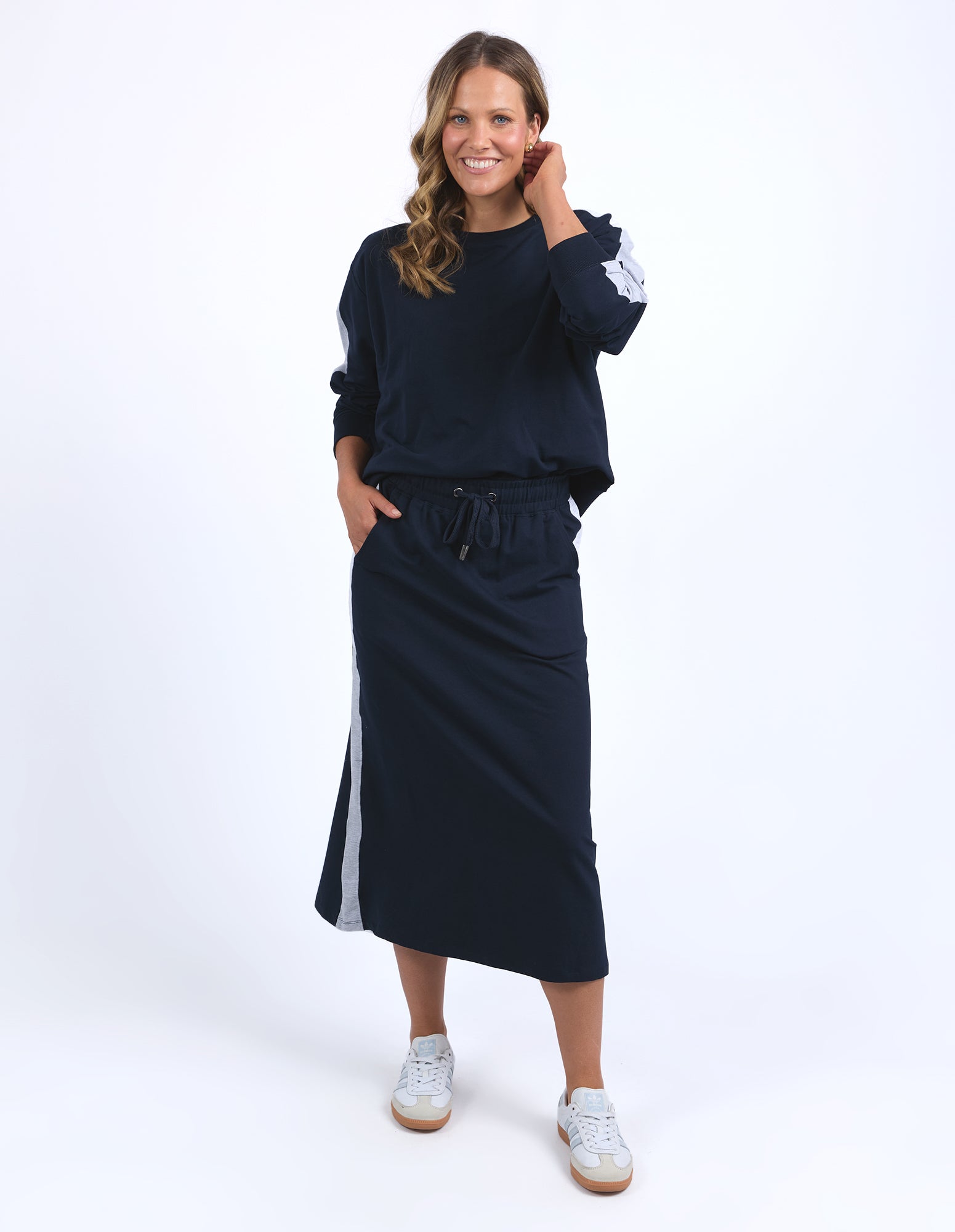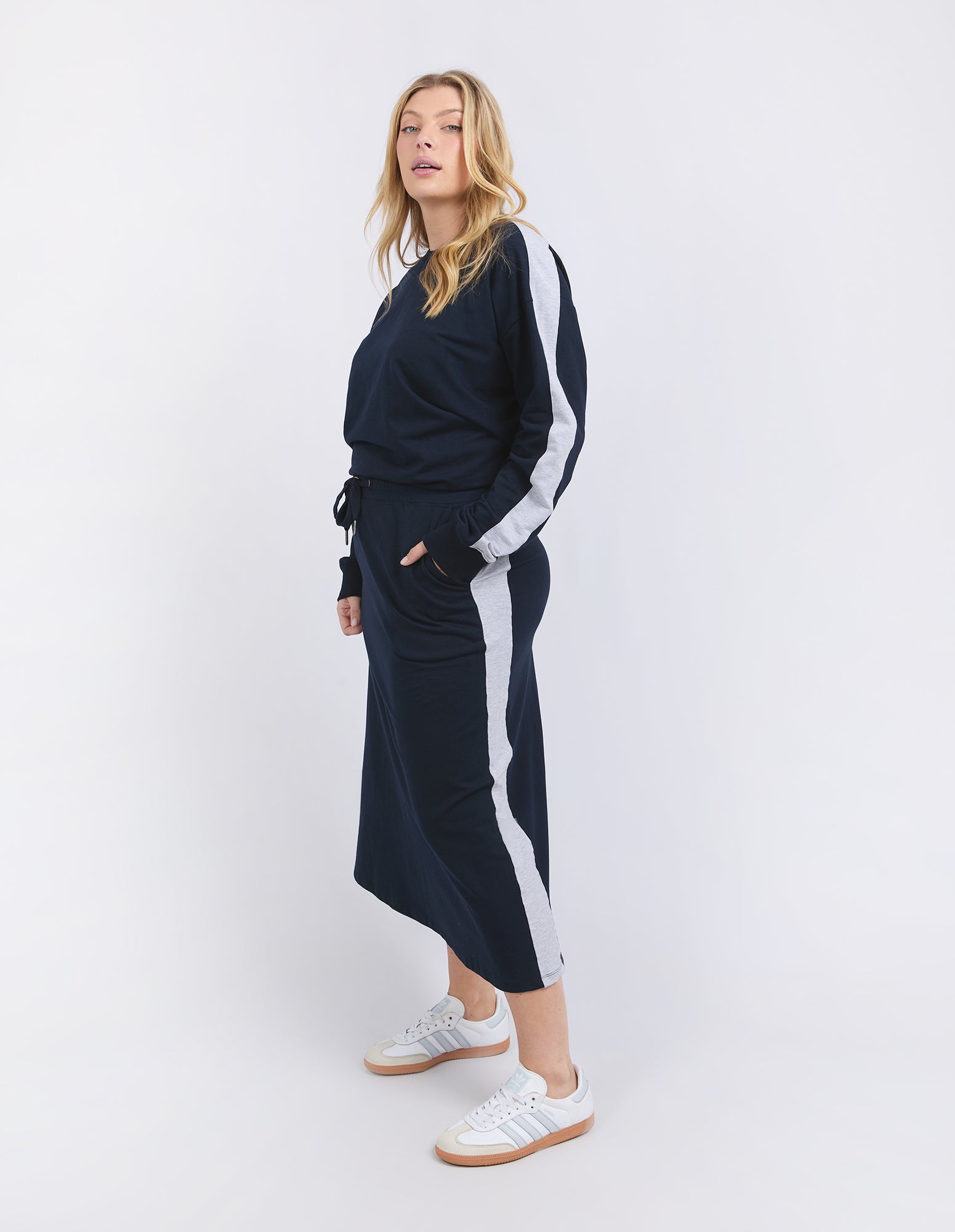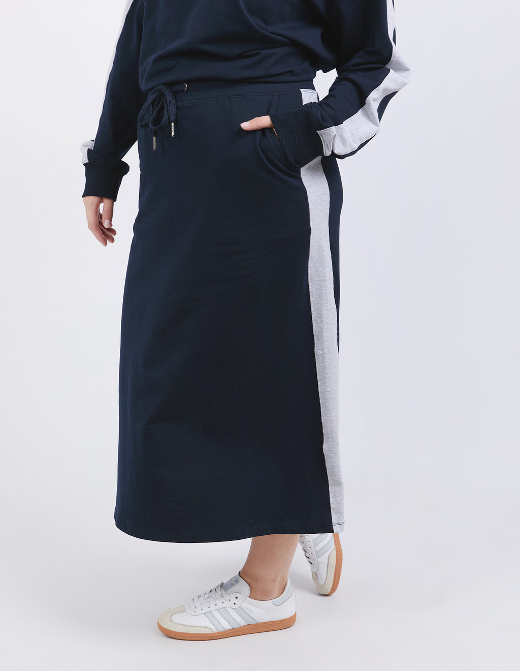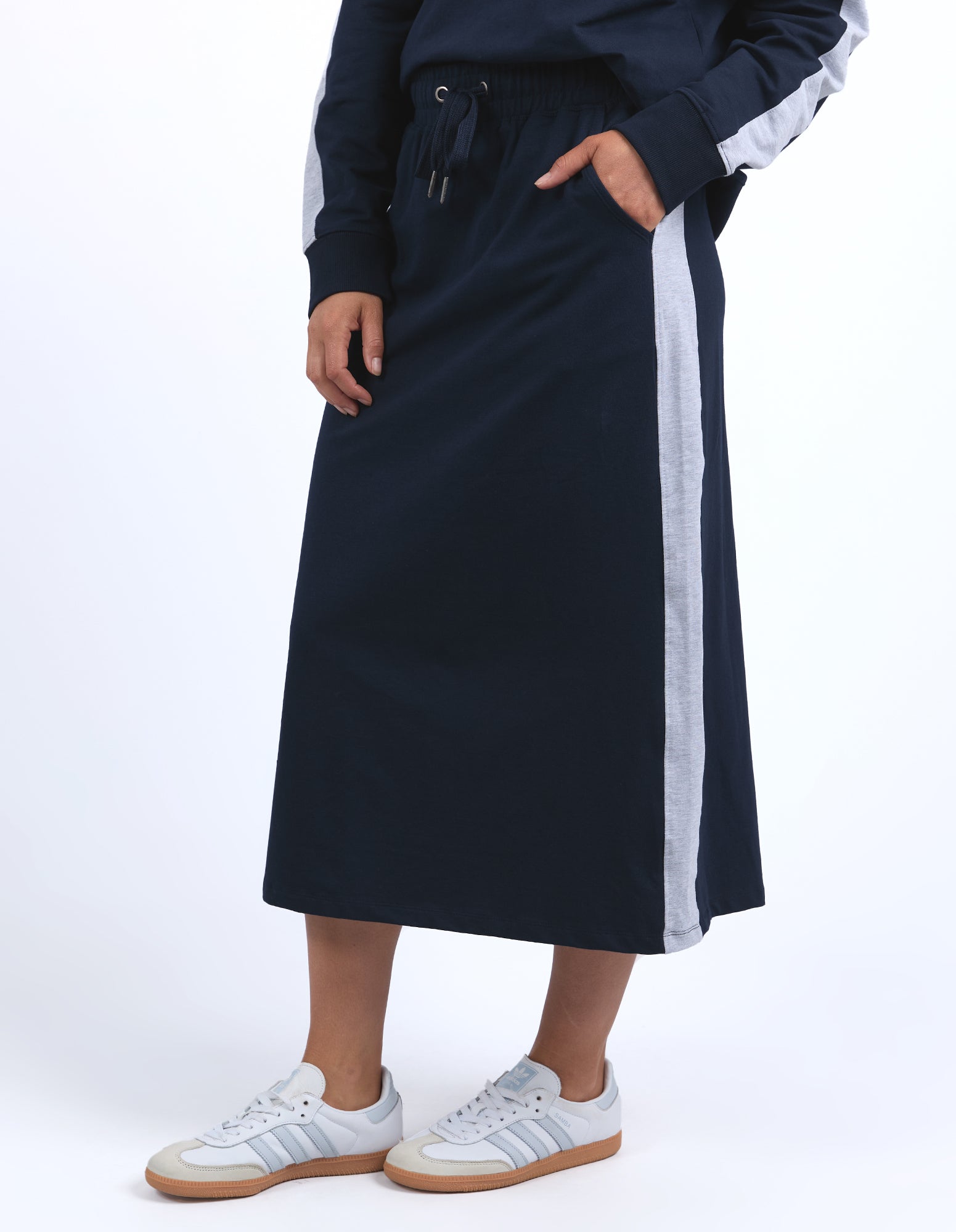 SLOANE FLEECE SKIRT - Navy/Grey Marle Trim