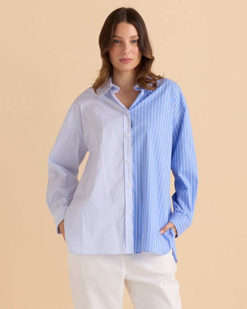 Stevie Shirt - Blue Stripe Contrast