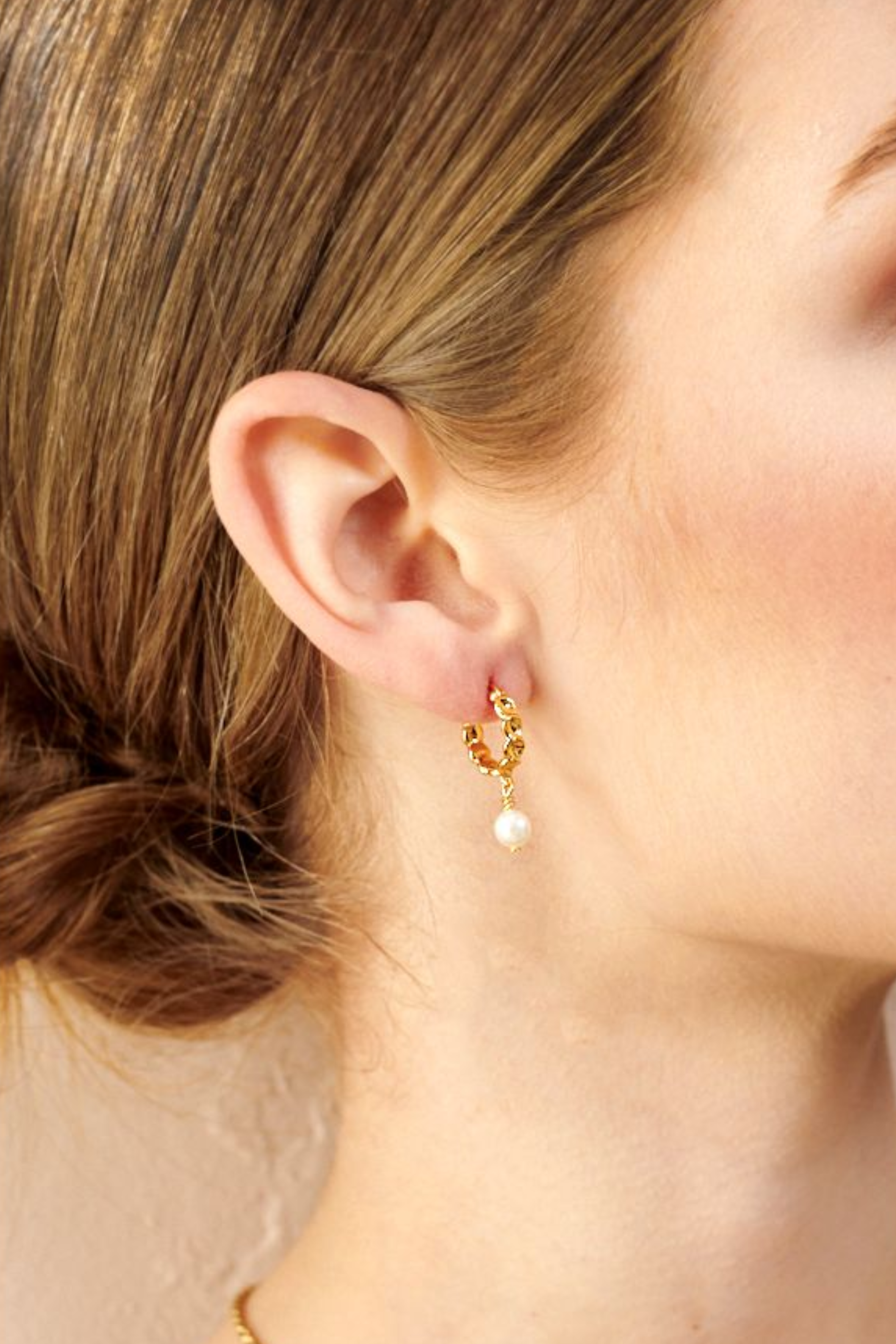 These beautiful earrings feature 18K gold plating over a brass base metal, topped with a protective anti-tarnish layer. Freshwater pearls complete the look, adding a touch of timeless beauty.