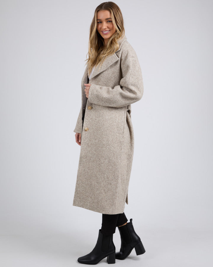 The Whistler Coat is perfect for cooler days. With a front button opening, a waist tie for a flattering fit, and handy side pockets, it’s equal parts stylish and practical. Crafted from a warm wool-polyester blend, it’s a must-have layer for the season.