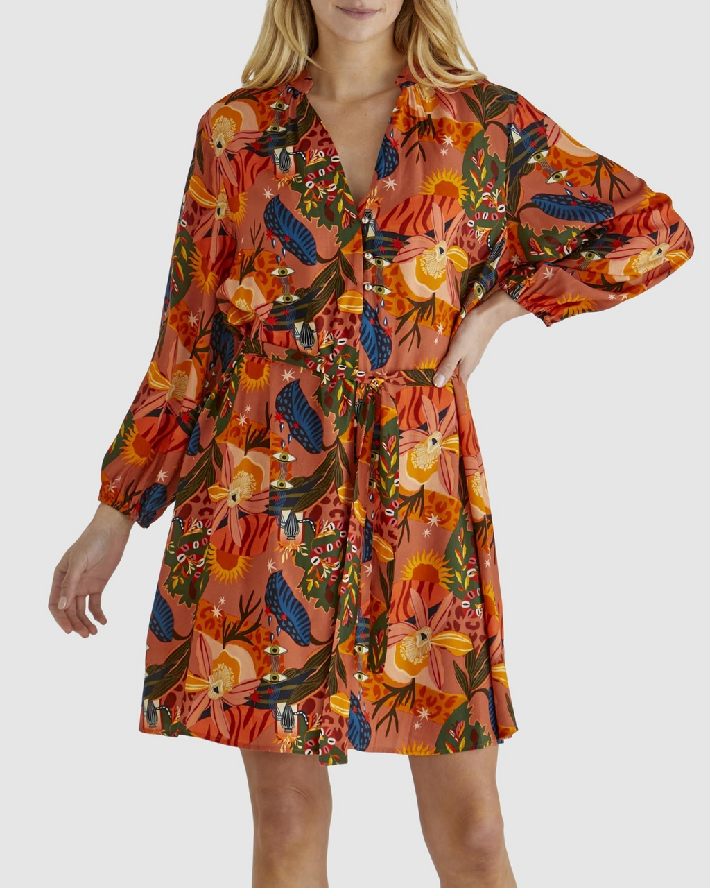 The Zelda Dress combines comfort with sophistication, featuring a stand collar and open neckline for an elevated touch. With below-elbow sleeves and a self-fabric belt, it’s perfect for creating a flattering silhouette. Effortlessly stylish, this dress is ideal for both casual and dressy moments.